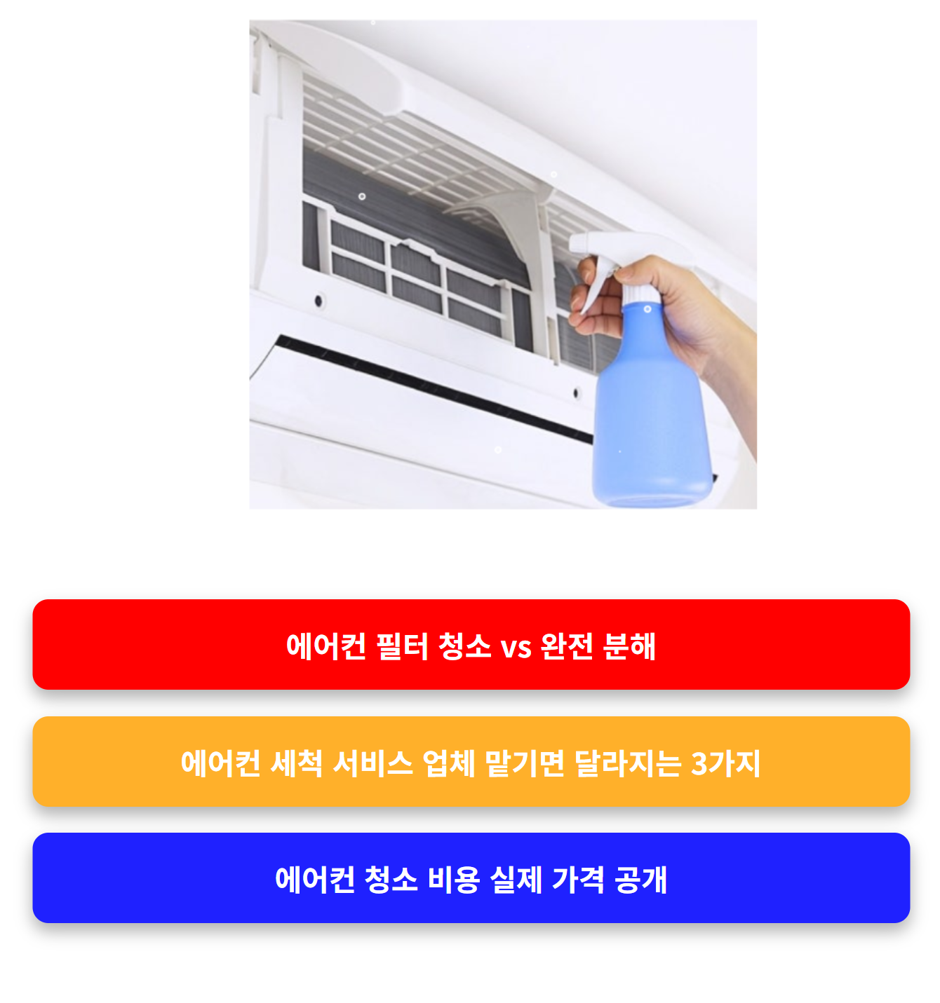 에어컨 필터 청소 vs 완전 분해 청소를 고민하고 있다면 반드시 이 차이를 알고 선택해야 합니다. 에어컨 필터 청소 vs 완전 분해는 단순 비용 차이가 아니라 효과 자체가 완전히 다릅니다. 특히 에어컨 필터 청소 vs 완전 분해 선택에 따라 냄새, 건강, 전기요금까지 영향을 받습니다.